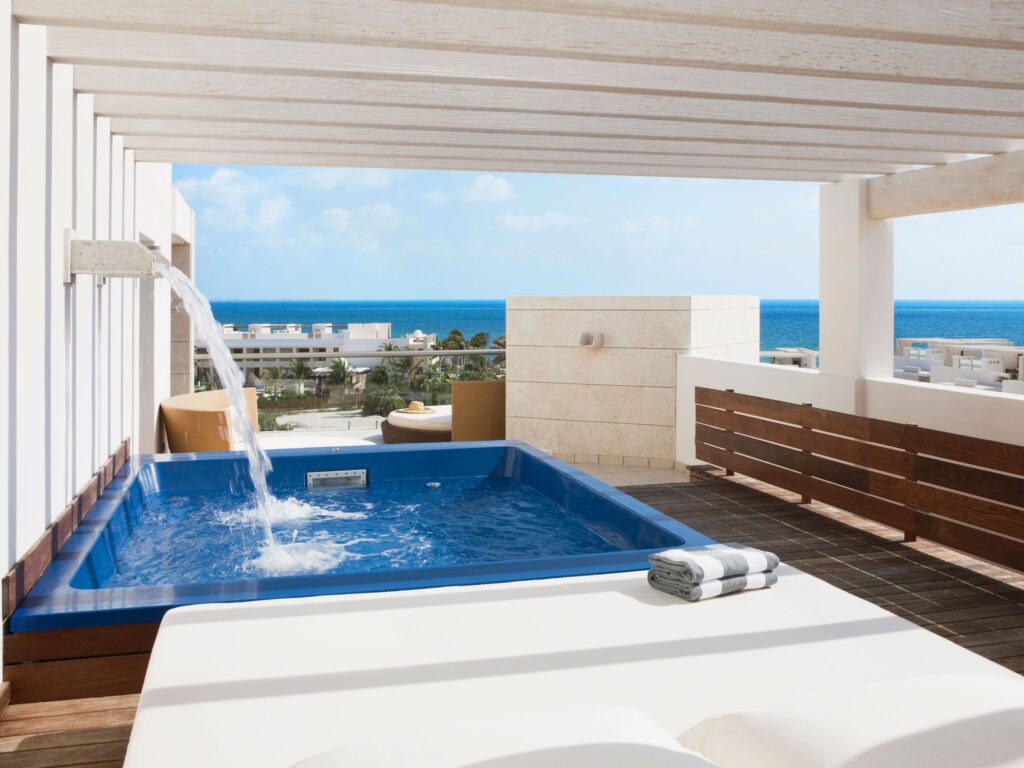 The suites at Beloved Playa Mujeres are designed to maximize comfort and elegance. Each suite features contemporary décor, modern technology, and luxurious touches like whirlpool tubs, private terraces, and ocean or garden views.